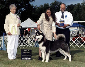 again won Best Senior Puppy in Sweepstakes, this time under breeder Bonnie McMahon (Kasaan Malamutes). Thank you, Bonnie. Once